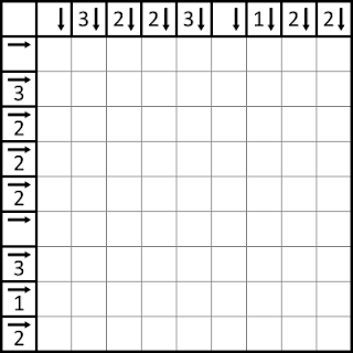 On a slightly parallel thread, a couple of days I commented on Para’s blog that he’d hit the jackpot with yajilin presentation. Trust me to go and find an example which then exploits a potential ambiguity in what I thought was so great. As such I’ve made some slight modifications which I don;t think look so bad given the visual theme of the puzzle. Notice that without the arrows in the blank cells, it is ambiguous as to whether R1C1 is a blank clue or simply part of the grid! In a slightly similar vein, the blank clues at R1C7 and R7C1 might just as easily be interpreted – for solving purposes anyway – as cells in the grid to be trivially shaded in. What will we do with yajilin presentations, dearest reader?